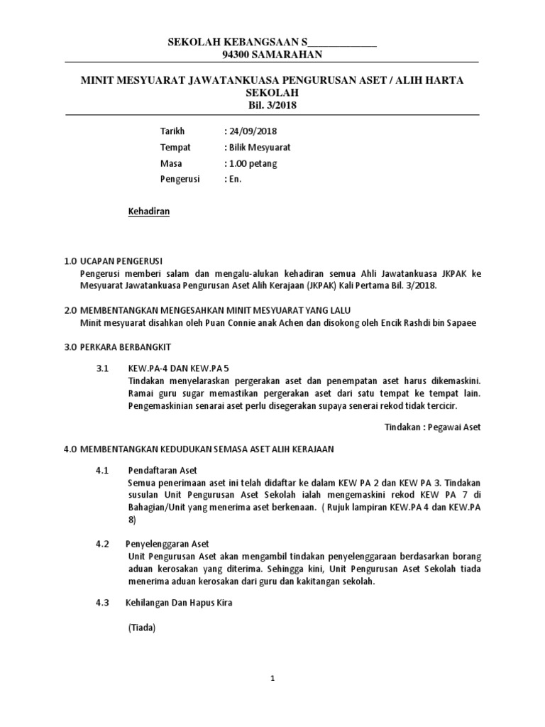 Pb Bil 1 2008 Tatacara Pengurusan Aset Alih from demo.dokumen.tips Tatacara pengurusan aset alih kerajaan. Tatacara pengurusan aset alih kerajaan (tpa) ini adalah tatacara bagi menguruskan harta modal dan inventori meliputi. Bp pa, kp m tujuan tps bertujuan untuk menguruskan. Nota kursus pengurusan aset siri 1 pada 13 hingga 15 ogos 2018. Tubuhkan unit pengurusan aset (upa) melantik : Memastikan semua aset alih kerajaan diuruskan mengikut tatacara yang telah ditetapkan. Microsoft word document 23.5 kb. Select category aktiviti pelajar (3) berita semasa (30) buku rujukan (3) contoh latihan amali (5) download (15) dpin (4) hvac (6) inverter (1) kapa (1) keselamatan (4) kursus pav (3) macra (4) mesyuarat pav (1) noss (8) nota penyaman udara (7) pav (2) pdp (12) pengurusan bengkel (6).