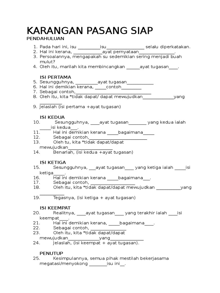 Usaha menaik taraf sistem pengangkutan awam negara memberikan banyak manfaat kepada masyarakat. 23) soalan contoh dalam era globalisasi ini, penguasaan ilmu dalam pelbagai bidang akan menentukan kejayaan seseorang itu. Teknik menulis karangan a dalam spm bahasa melayu apakah teknik untuk menulis karangan a dalam kertas peperiksaan. 30 marah (karangan pasang siap) spm 2020. 45 minit ) gambar rajah dibawah menunjukkan sebahagian daripada petua. Program rukun tetangga di kawasan perumahan mesti dihidupkan semula oleh masyarakat setempat 3. Teknik menulis karangan a : Hal ini kerana, ayat pernyataan. 17 downloads 299 views 70kb size. Modul perkasa bagi murid cemerlang spm 2012. Sekiranya anda hendak muat turun karangan, sila emelkan permintaan anda kepada admin di. Para pedagang senjata menjadikan nyawa manusia sebagai taruhan untuk mengaut keuntungan tinggi ekoran perkembangan industri senjata dunia. Perlukan contoh karangan bagi tajuk yang lain?